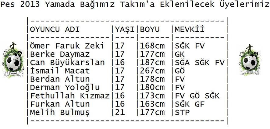 İşte yamada bağımsız ligde olacak üyelerimiz;